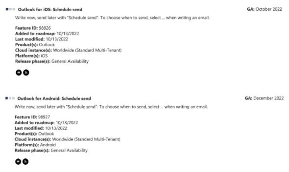 根據微軟 365 路線(xiàn)圖頁(yè)面,微軟正計劃將“安排和發(fā)送”功能帶給安卓和 iOS 用戶(hù),使他們能夠延遲發(fā)送郵件。IT之家獲悉,該功能與 Outlook.com 和 Outlook 桌面應用中的“延遲發(fā)送”功能非常相似。