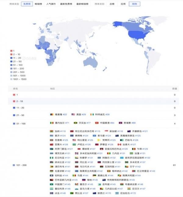 相關(guān)數據顯示,Temu 已在非洲多個(gè)國家進(jìn)入 Google Play 購物免費榜前 200 應用之列。其中在喀麥隆,Temu 位列 Google 購物類(lèi)免費榜 22 名,超過(guò)其在美國排名。