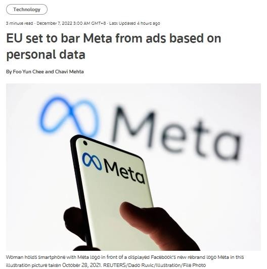 據歐盟隱私監督機構決定 Meta將只能在用戶(hù)同意的情況下根據個(gè)人數據投放廣告 09:29:08