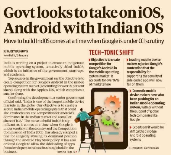 在印度移動(dòng)操作系統中,蘋(píng)果的 iOS 和谷歌的 Android 兩家幾乎占據了所有份額。印度為了應對這樣的危機,決定開(kāi)發(fā)和推廣名為 IndOS 的系統。