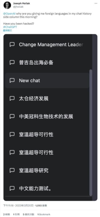 本次事件自本周一開(kāi)始,用戶(hù)反饋在聊天記錄中顯示了來(lái)自于他人的 ChatGPT 聊天對話(huà)。IT之家翻譯阿爾特曼的推文內容如下:“小部分用戶(hù)可以看到其他用戶(hù)聊天的相關(guān)標題”,但他并未就此事展開(kāi)說(shuō)明。