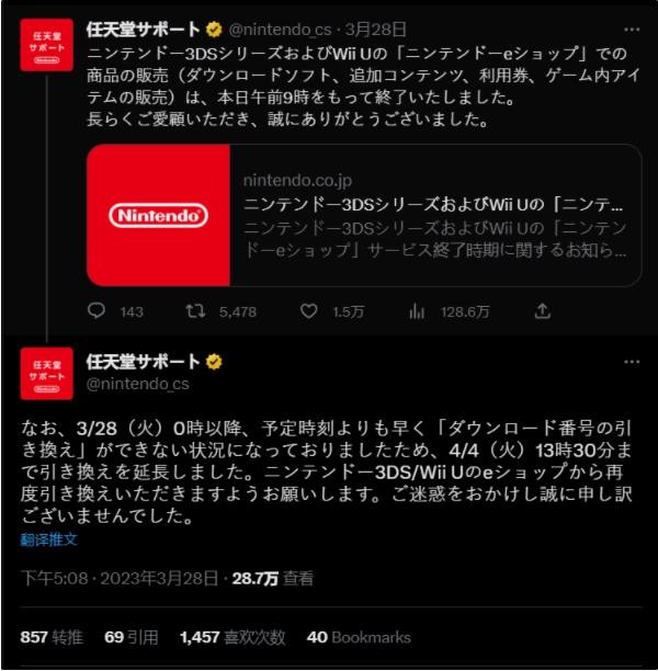 任天堂正式關(guān)閉3DS和Wii U線(xiàn)上商店 玩家將無(wú)法再使用 14:27:59