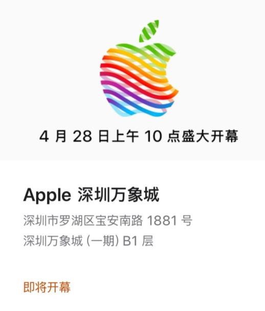 根據此前消息,蘋(píng)果將在深圳籌建第二家 Apple Store。今日,IT之家網(wǎng)友發(fā)現,蘋(píng)果官網(wǎng)顯示深圳萬(wàn)象城 Apple Store 將于 4 月 28 日 10:00 正式開(kāi)幕。