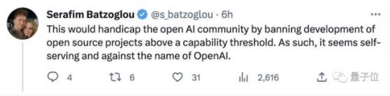 有網(wǎng)友認為 OpenAI 提出這樣的舉措,阻礙了開(kāi)放人工智能社區的發(fā)展,這看起來(lái)是自私的,與 OpenAI 的名稱(chēng)相違背: