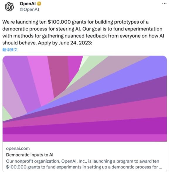 與此同時(shí),OpenAI 周四表示,將從一只 100 萬(wàn)美元(IT之家備注:當前約 708 萬(wàn)元人民幣)基金中拿出 10 筆等額撥款,每筆 10 萬(wàn)美元(當前約 70.8 萬(wàn)元人民幣),用于民主進(jìn)程的實(shí)驗,以確定如何管理 AI 軟件,以解決偏見(jiàn)和其他問(wèn)題。
