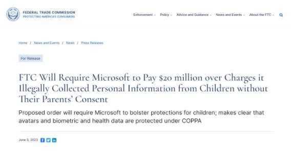 微軟將向美國聯(lián)邦貿易委員會(huì )(FTC)支付 2000 萬(wàn)美元(IT之家備注:當前約 1.42 億元人民幣)的和解金,以解決該公司違反美國《兒童在線(xiàn)隱私保護法》(COPPA)的指控。