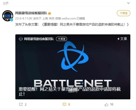 今日,@網(wǎng)易暴雪游戲客服團隊 發(fā)布提醒:基于 2023 年 2 月 1 日發(fā)布的《網(wǎng)之易關(guān)于暴雪游戲產(chǎn)品運營(yíng)到期開(kāi)放退款的說(shuō)明》,提交退款申請的截止日期為 2023 年 6 月 30 日,未在截止日期前完成退款申請的玩家將被視為主動(dòng)放棄相關(guān)權益。鑒于以上,特此提醒目前尚未完成退款申請的玩家,請盡快前往“暴雪游戲服務(wù)中心”公眾號提交退款申請。