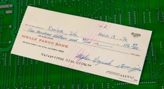 據介紹,這張支票是蘋(píng)果公司于 1976 年 3 月 19 日開(kāi)出的,金額為 116.97 美元(IT之家備注:當前約 838 元人民幣),抬頭為 Ramlor, Inc. 這是一家位于帕洛阿爾托的印刷電路板制造商。這張支票是蘋(píng)果公司開(kāi)設第一個(gè)銀行賬戶(hù)后發(fā)出的臨時(shí)支票,編號為“2”,它比蘋(píng)果公司正式成立的日期還要早 13 天。當時(shí),喬布斯、沃茲尼亞克和羅納德?韋恩三人在 4 月 1 日簽署了合伙協(xié)議,正式創(chuàng )立了蘋(píng)果電腦公司。根據協(xié)議,兩位史蒂夫各持有公司 45% 的股份,韋恩持有 10% 的股份。此外,協(xié)議還規定任何超過(guò) 100 美元的支出都需要兩位合伙人的批準 —— 這也許是為什么這張支票需要喬布斯和沃茲尼亞克兩人的簽名的原因?;谶@張支票的日期,有理由推測它與第一臺 Apple-1 電腦有關(guān)。Apple-1 是蘋(píng)果公司推出的第一款個(gè)人電腦,當時(shí)只是作為一個(gè)電路板套件供愛(ài)好者自行焊接。后來(lái),在加州山景城的 The Byte Shop 商店老板保羅?特雷爾的建議下,蘋(píng)果公司開(kāi)始提供組裝好的電腦。這張支票的起拍價(jià)為 5 萬(wàn)美元以上,截止日期為 8 月 24 日。
