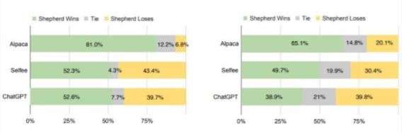 研究顯示,Shepherd 模型明顯優(yōu)于其他模型,并且平均值與 ChatGPT 模型相差無(wú)幾。