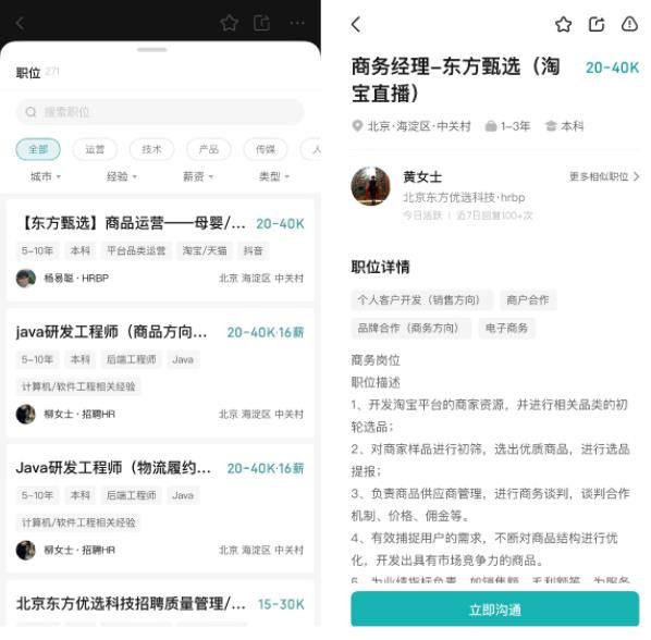 在部分招聘網(wǎng)站上,東方甄選已經(jīng)掛出淘寶直播相關(guān)招聘信息,組建包括對接淘寶直播的商務(wù)經(jīng)理、視覺(jué)設計師、選品經(jīng)理等運營(yíng)團隊。此外,東方甄選也在整合淘寶平臺商家資源,一些品牌商家已經(jīng)收到合作邀約。