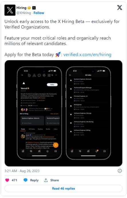 X 宣布上線(xiàn) Beta 版 X Hiring 平臺 對標 LinkedIn 招聘平臺 14:14:55