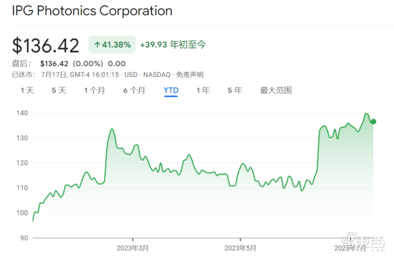 ▲年初至今 IPG 光電股價(jià)走勢,來(lái)源:谷歌財經(jīng)