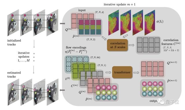 Transformer 編碼了視頻中點(diǎn)的跟蹤信息,并迭代更新點(diǎn)的位置。