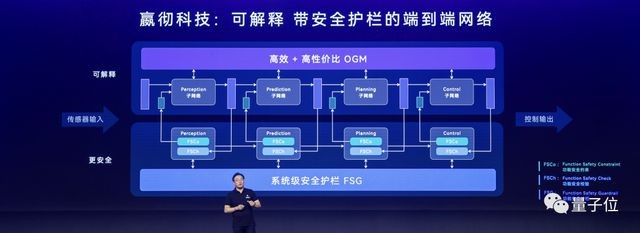嬴徹科技則提出了“帶安全護欄的端到端網(wǎng)絡(luò )”,把傳統的端到端網(wǎng)絡(luò )分解成數個(gè)可微分的子網(wǎng)絡(luò ),建立可解釋的端到端網(wǎng)絡(luò ),并構建安全護欄進(jìn)行約束。