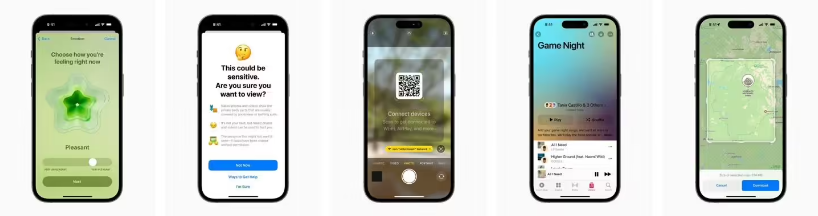 健康 App 帶來(lái)了全新精神健康功能。用戶(hù)可記錄自己的每日心情和暫時(shí)性情緒;查看哪些因素在影響自己的精神狀態(tài);輕松訪(fǎng)問(wèn)通常在診所中使用的抑郁和焦慮評估手段,以及其他本地可用資源。此外,增加設備與眼睛之間的距離有助于降低兒童患近視的風(fēng)險,并幫助成人用戶(hù)緩解數字眼疲勞癥狀。屏幕使用時(shí)間的屏幕距離功能會(huì )利用原深感攝像頭,在設備距離用戶(hù)面部不足 12 英寸(30.48 厘米)達一段時(shí)間后,鼓勵用戶(hù)將設備移遠。