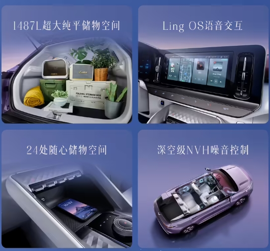 新車(chē)內飾提供“朝霞云白”“天幕黑金”兩種配色,車(chē)內 8 處高頻接觸區域號稱(chēng)運用了 100% 的皮質(zhì)進(jìn)行軟包覆。該車(chē)配備有 10.25 英寸中控屏和 7 英寸液晶儀表,搭載 Ling OS 靈犀系統,支持語(yǔ)音交互、OTA 升級等功能。
