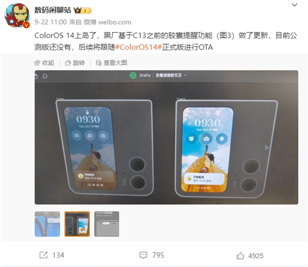 爆料稱(chēng),ColorOS 14的“類(lèi)靈動(dòng)島”功能是基于ColorOS 13之前的膠囊提醒功能進(jìn)行更新,后者可以讓重要通知在狀態(tài)欄膠囊進(jìn)行提醒。