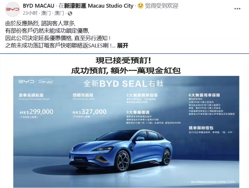 比亞迪海豹汽車(chē)在澳門(mén)地區上市