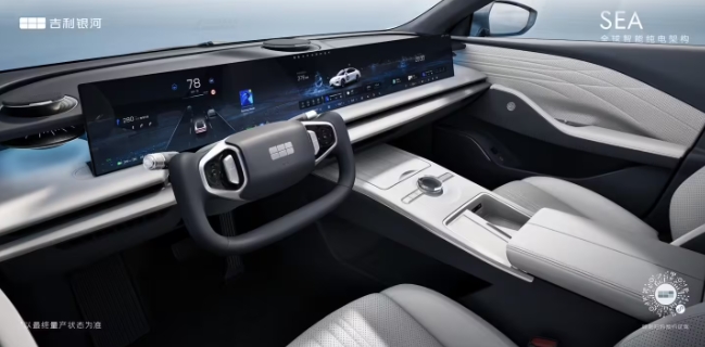 內飾方面,最引人注目的就是這塊 45 英寸 8K 顯示屏,有效顯示區域尺寸達到 1130 毫米 * 138 毫米,從駕駛位左側一直延續到副駕右側,幾乎貫穿了整個(gè)中控臺。大屏還采用了超薄設計,厚度為 9.8 毫米。內置的車(chē)機系統支持游戲應用,可以通過(guò)手機或者手柄進(jìn)行控制,在 P 擋狀態(tài)下,用戶(hù)可以用這塊屏幕來(lái)打游戲。據悉,新車(chē)將搭載高通驍龍 8295 旗艦級芯片,以及吉利全新的車(chē)機系統。