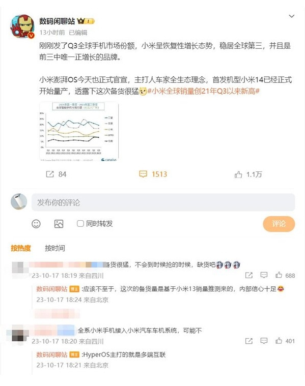 首發(fā)自研澎湃OS!曝小米14備貨量很猛