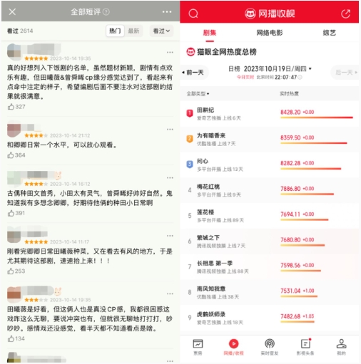 隨著(zhù)釋出內容逐漸增多,不少觀(guān)眾已經(jīng)將《田耕紀》列入“下飯清單”,劇中新穎的設定、輕松的氛圍、以及緊湊的劇情也讓這部劇收獲不少好評??诒蜗?,《田耕紀》熱度表現不俗,除了愛(ài)奇藝站內,該劇在貓眼、德塔文等多家數據平臺熱度登頂,《田耕紀》也隨之成為當前頗受歡迎的“電子榨菜”之一。