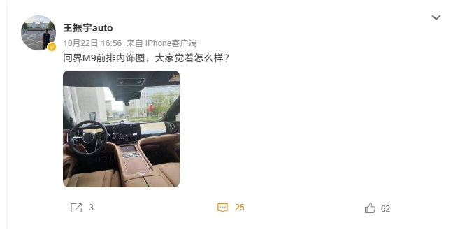 大面積木制覆蓋 + 三聯(lián)屏,問(wèn)界 M9 實(shí)車(chē)內飾曝光