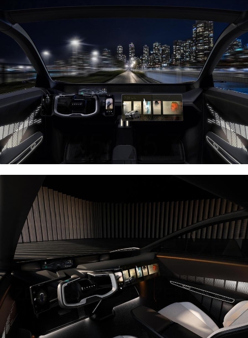 內飾方面,該車(chē)采用了 yoke 方向盤(pán),方向盤(pán)兩邊各有一個(gè)數字控制面板,左側面板用于控制汽車(chē)的主要系統,如駕駛模式、駕駛輔助和安全系統,右側面板則控制娛樂(lè )和通風(fēng)等功能。前排乘客還有一個(gè)“超寬”顯示屏,可以運行娛樂(lè )和其他應用。