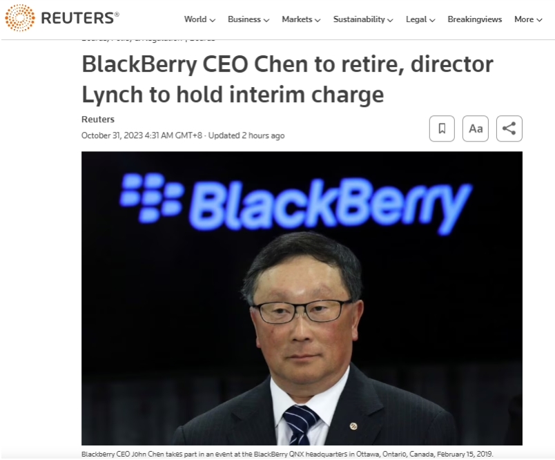 執掌十年,黑莓 CEO 程守宗將于本周五退休