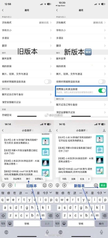 iOS微信新增獨立發(fā)送按鈕上熱搜 安卓用戶(hù):一直都是