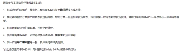 根據官方公告,消費者成功預約申購后,華為將在預約申購期內按照隨機順序完成發(fā)貨。