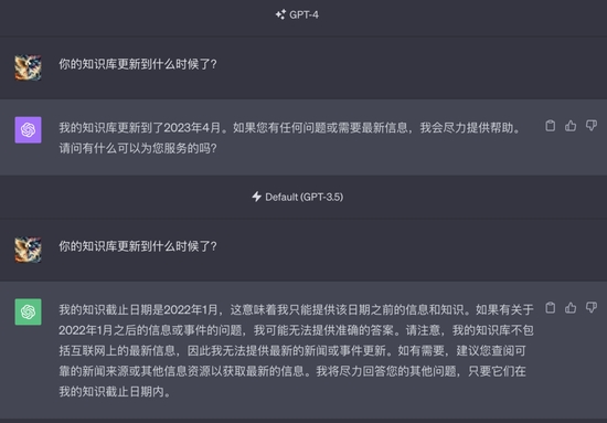 GPT-4的知識庫更新到2023年4月。目前ChatGPT中使用的GPT-4模型,已經(jīng)將知識庫更新到了2023年4月,不過(guò)GPT-3.5的知識庫仍然停留在2022年1月。