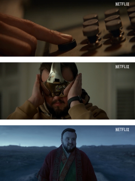 在原著(zhù)中,《三體》是一款身臨其境的虛擬現實(shí)游戲。在預告片中,杰克?魯尼(約翰?布拉德利飾)和金城(杰西?洪飾)都不了解這款虛擬現實(shí)裝置,杰克佩戴后置身于一個(gè)非常真實(shí)的環(huán)境,這時(shí)一個(gè)陌生的女人(下岡海飾)突然出現,朝他揮舞長(cháng)劍。
