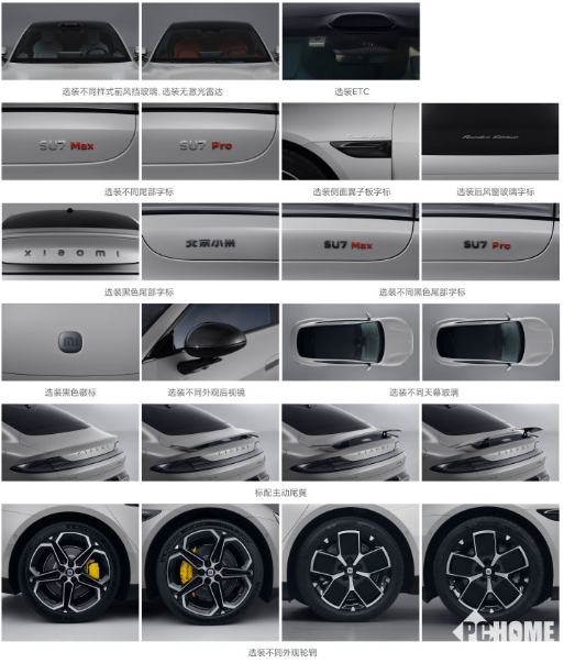 配置方面,小米SU7將有標準版和Max版(圖為標準版),標準版采用60度電池,由比亞迪弗迪動(dòng)力提供的400V平臺,單電機來(lái)自聯(lián)合汽車(chē)電子有限公司,功率220KW,預估售價(jià)在19-25萬(wàn)之間;Max版性能更強,配置雙電機和激光雷達,電池容量達到100度,采用了寧德時(shí)代的800V平臺,電機由蘇州匯川聯(lián)合動(dòng)力提供,總功率達到495KW,預估售價(jià)在35-39萬(wàn)之間。此外,還可選裝“創(chuàng )始版”翼子板字標(或有雷總簽名?)、選裝ETC、選裝激光雷達、選裝不同輪輞、黃色涂裝剎車(chē)卡鉗等豐富配置。