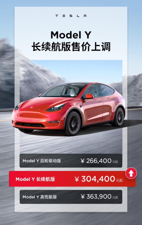 特斯拉中國官方今日宣布,Model Y 長(cháng)續航版漲價(jià) 2000 元,現價(jià) 30.44 萬(wàn)元。