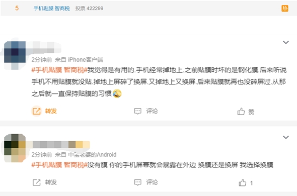 今日,一則#手機貼膜 智商稅#的詞條登上微博熱搜榜,引來(lái)網(wǎng)友圍觀(guān)和熱議。