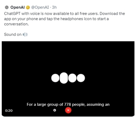 OpenAI宣布將ChatGPT with voice語(yǔ)音功能免費對所有用戶(hù)開(kāi)放。