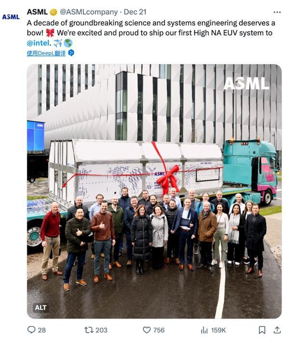 "耗時(shí)十年的開(kāi)創(chuàng )性科學(xué)和系統工程值得鞠一躬!我們很高興也很自豪能將我們的第一臺高數值孔徑的極紫外光刻機交付給 Intel。"ASML 公司說(shuō)道。