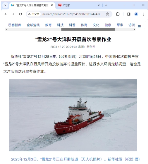 北京時(shí)間 12 月 28 日,中國第 40 次南極考察“雪龍 2”號大洋隊在西風(fēng)帶開(kāi)始投放拋棄式溫鹽深儀,進(jìn)行水文環(huán)境走航調查,這是大洋隊首次開(kāi)展考察作業(yè)。