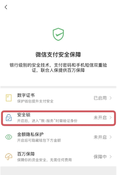 設置方式:用戶(hù)可通過(guò)【服務(wù)】-【錢(qián)包】-【消費者保護】-【安全保障】-【安全鎖】?jì)仍O置使用面容、指紋或手勢密碼。