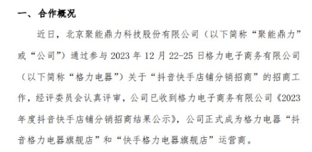 聚能鼎力中標成為“抖音格力電器旗艦店”、“快手格力電器旗艦店”運營(yíng)商