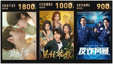 都市愛(ài)情微短劇《盲心千金》項目分賬達1800萬(wàn);都市劇情愛(ài)情微短劇《見(jiàn)好就收》項目分賬突破1000萬(wàn);電信詐騙類(lèi)型網(wǎng)絡(luò )短劇《反詐風(fēng)暴》項目分賬900萬(wàn);還有兩部主打甜寵的微短劇《只是離婚的關(guān)系》和《結婚嗎?好的》各自項目分賬800萬(wàn)。