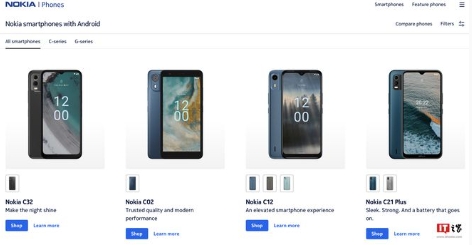 ▲ 諾基亞官網(wǎng)“nokia.com/phones”手機板塊頁(yè)面