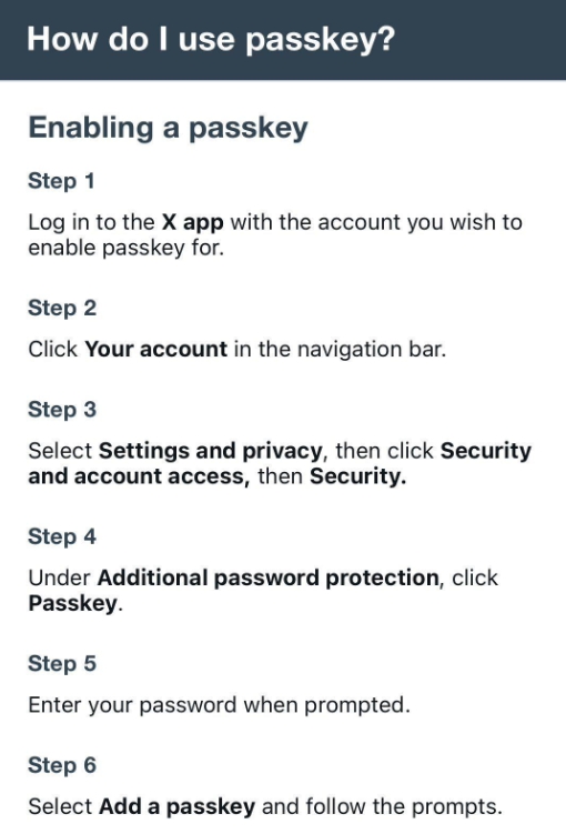移除短信驗證后,X(推特)平臺添加通行密鑰(Passkey)支持