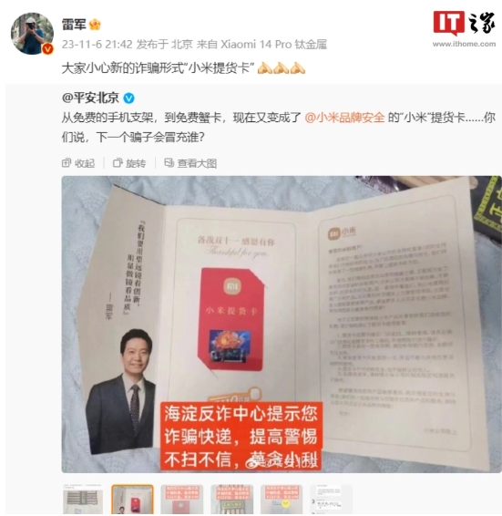 此前還出現過(guò)“小米提貨卡”新型詐騙形式,雷軍還提醒用戶(hù)不要上當。