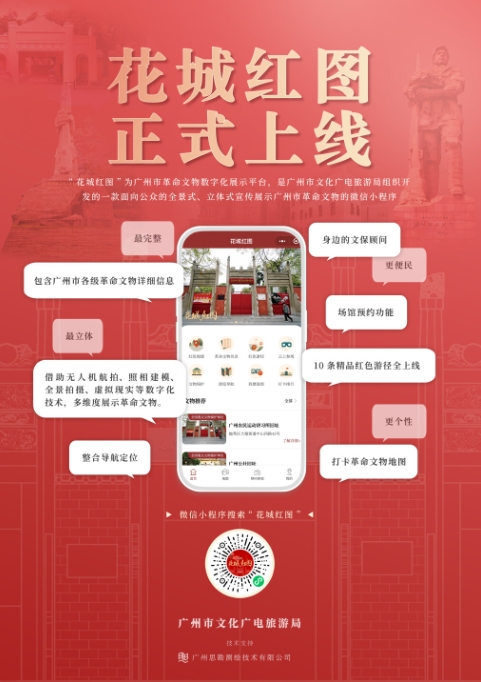 火紅的三月,火熱的花城,“英雄花開(kāi)英雄城”活動(dòng)的大幕即將拉開(kāi)。廣州市文化廣電旅游局準備的“紅色大禮包”——“花城紅圖:廣州市不可移動(dòng)革命文物數字化展示應用系統”(以下簡(jiǎn)稱(chēng)“花城紅圖”)微信小程序正式上線(xiàn)。