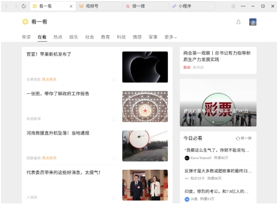 一鍵打開(kāi)更多內容,包括視頻號、小程序、搜一搜、看一看。
