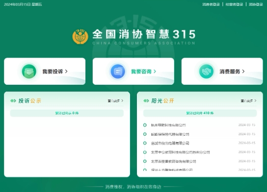 “全國消協(xié)智慧 315”平臺今日上線(xiàn),統一受理投訴