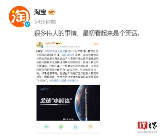 淘寶回應“試驗火箭送快遞”:很多偉大的事情,最初看起來(lái)是個(gè)笑話(huà)