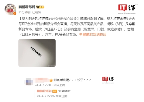 消息稱(chēng)華為明天起將連續 5 天召開(kāi)新品介紹會(huì ),P70 發(fā)布時(shí)間未知