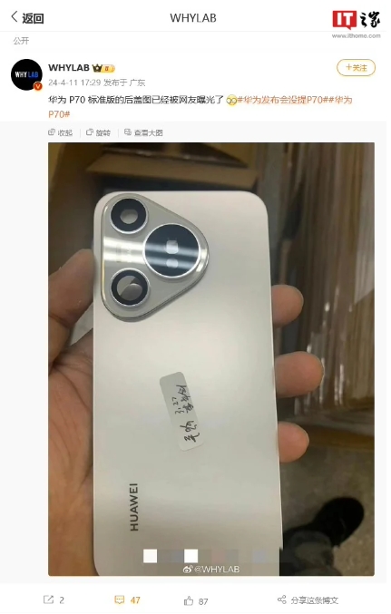 華為 Pura 70 系列手機官宣,確認采用三角形相機島設計